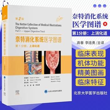 <p> <strong>基本信息</strong><br /> 书名:奈特消化系统医学图谱 第1分册 上消化道 第2版<br /> 作者 :(美)弗兰克·奈特作;詹姆斯·雷诺兹编 高春,李连勇译<br /> 出版社 :北京大学医学出版社<br /> 出版时间:2024.01<br /> ISBN号 :978-7-5659-2838-3<br /> 原书定价 : 260.00</p> <p> <strong>内容提要</strong><br /> 本书作者以通俗易懂的语言,简明扼要地介绍了人体消化系统的正常解剖、生理与异常状态下的相关改变及主要疾病的临床表现等关键知识,内容包括解剖学、生理学、组织胚胎学及各种消化系统疾病,并配以形象逼真、高度概括的插图,将深奥的基础科学与临床医学融会贯通,使读者易于领悟奇妙的人体结构和机体功能,以及疾病发生机制和临床表现。本书实现了医学与艺术、专业与科普、系统全面与简明实用三大完美结合,是一部具有近70年沉淀和辉煌的经典著作,既可作为医学院校学生和低年资医务人员选修教材,也可作为消化系统疾病患者、医学爱好者及青少年医学科普教育读物。</p> <p> <strong>目录</strong><br /> 第1章 上消化道概述 <br /> 1-1胃肠道发育第14、16天<br /> 1-2胃肠道发育第18天和第1个月<br /> 1-3胃肠道发育第5、6周和第2个月<br /> 1-4胃肠道发育第10周和第4~5个月;横膈发育的第9周<br /> 1-5第2个月时胃的毗邻关系;第2~3个月的矢状断面<br /> 1-6与成人相比第3~4个月的矢状断面<br /> 1-7腹部分区<br /> 1-8腹盆腔的骨架结构<br /> 1-9前腹壁:表层<br /> 1-10前腹壁:中层<br /> 1-11前腹壁:深层<br /> 1-12后侧腹壁<br /> 1-13前侧腹壁:前外侧腹壁内侧观<br /> 1-14腹股沟区:解剖图<br /> 1-15腹股沟管和精索<br /> 1-16股鞘和腹股沟管<br /> 1-17腹腔后壁<br /> 1-18膈<br /> 1-19腹盆腔底部<br /> 1-20腹膜:旁正中(矢状面)<br /> 1-21 T12水平的腹部横截面示意图<br /> 1-22 L3、L4水平的腹部横截面示意图<br /> 1-23后腹壁的腹膜<br /> 1-24网膜囊:胃反折<br /> 1-25骨盆内容物:男性<br /> 1-26骨盆内容物:女性<br /> 1-27盆腔筋膜和会阴<br /> 1-28矢状面筋膜解剖<br /> 1-29坐骨肛门窝<br /> 1-30实际和潜在的会阴间隙<br /> 1-31骨盆筋膜和盆腔间隙<br /> 1-32后腹壁动脉分布<br /> 1-33前腹壁动脉分布<br /> 1-34前腹壁静脉分布<br /> 1-35后腹壁静脉分布<br /> 1-36腹部淋巴引流<br /> 1-37胸腹神经<br /> 1-38腹前壁神经<br /> 1-39腰骶丛和尾骨神经丛<br /> 1-40腹壁后神经<br /> 1-41会阴神经:男性<br /> 1-42消化系统概述<br /> 1-43控制机制概述<br /> 1-44控制机制概述(续)<br /> 1-45脑-肠相互作用和内脏反射<br /> 1-46肠道神经系统<br /> 1-47内脏疼痛的阐释<br /> 1-48内脏疼痛的阐释(续)<br /> 1-49胃肠道激素<br /> 1-50保护机制概述<br /> 1-51食管下括约肌<br /> 1-52消化系统的免疫防御<br /> 1-53消化系统的上皮细胞防御机制<br /> 1-54微生物组<br /> 1-55药物对上消化道的副作用<br /> 1-56饥饿和食欲<br /> 1-57饥饿和食欲的紊乱<br /> 1-58胃肠道出血概述<br /> 1-59胃部疾病的辅助检查<br /> 1-60上胃肠道影像学检查综述<br /> 1-61上胃肠道影像学检查综述(续)<br /> 1-62上消化道内镜应用<br /> 1-63上消化道内镜应用(续)<br /> 1-64组织学与细胞学诊断<br /> 1-65呼气试验<br /> 1-66粪便检查<br /> 第2章 口腔与咽部<br /> 2-1口腔和咽部发育<br /> 2-2口腔<br /> 2-3下颌骨<br /> 2-4颞下颌关节<br /> 2-5口底<br /> 2-6口盖<br /> 2-7与咀嚼有关的肌肉:外侧观<br /> 2-8与咀嚼有关的肌肉:外侧观和后面观<br /> 2-9舌:舌背与舌微细结构<br /> 2-10舌:舌侧面观<br /> 2-11牙齿:乳牙和恒牙<br /> 2-12牙齿:详细的解剖<br /> 2-13唾液腺<br /> 2-14口腔和下颌骨的不同切面<br /> 2-15咽门<br /> 2-16口腔和咽部组织学<br /> 2-17咽:中间切面部分<br /> 2-18咽:切开后位像<br /> 2-19口腔和咽喉的骨结构框架<br /> 2-20咽部的肌肉组织:矢状面<br /> 2-21咽部的肌肉组织:侧面图<br /> 2-22咽部的肌肉组织:部分打开的后位像<br /> 2-23口腔和咽部的动脉<br /> 2-24上颌动脉<br /> 2-25口腔和咽静脉引流<br /> 2-26头颈淋巴管和淋巴结<br /> 2-27咽和舌的淋巴管和淋巴结<br /> 2-28口咽部神经<br /> 2-29口咽部传入神经支配<br /> 2-30口腔和咽部的自主神经支配<br /> 2-31口腔病变的诊断方法<br /> 2-32口腔先天性畸形<br /> 2-33牙齿异常<br /> 2-34牙齿异常(续)<br /> 2-35牙周病<br /> 2-36牙源性感染:感染来源和路径<br /> 2-37牙源性感染:脓肿形成<br /> 2-38牙龈炎<br /> 2-39舌部疾病的临床表现:裂纹舌、毛舌、正中菱形舌炎<br /> 2-40舌部疾病的临床表现:舌淀粉样变性、梅毒性舌炎、地图舌、巨舌<br /> 2-41黏膜白斑<br /> 2-42医源性药物对口腔黏膜的作用<br /> 2-43颞下颌关节畸形<br /> 2-44唾液腺炎症<br /> 2-45全身性感染的口腔表现<br /> 2-46胃肠道疾病的口腔表现<br /> 2-47风湿性疾病的口腔表现<br /> 2-48内分泌系统相关的口腔表现<br /> 2-49营养缺乏的口腔表现<br /> 2-50血液病的口腔表现<br /> 2-51各种皮肤病的口腔表现<br /> 2-52各种皮肤病的口腔表现(续)<br /> 2-53免疫缺陷状态的口腔表现<br /> 2-54神经源性的口咽异常表现<br /> 2-55咽部感染<br /> 2-56咽部过敏性疾病<br /> 2-57颌骨及口腔囊肿<br /> 2-58颌骨及口腔囊肿(续)<br /> 2-59口腔良性肿瘤<br /> 2-60口腔良性肿瘤(续)<br /> 2-61会厌和舌根(下咽部)良性肿瘤<br /> 2-62唾液腺良性肿瘤<br /> 2-63口咽部良性肿瘤<br /> 2-64口腔及口咽部恶性肿瘤<br /> 2-65唾液腺恶性肿瘤<br /> 2-66颌骨恶性肿瘤<br /> 2-67下咽部恶性肿瘤<br /> 2-68唾液分泌<br /> 2-69咀嚼<br /> 2-70咀嚼(续)<br /> 2-71
